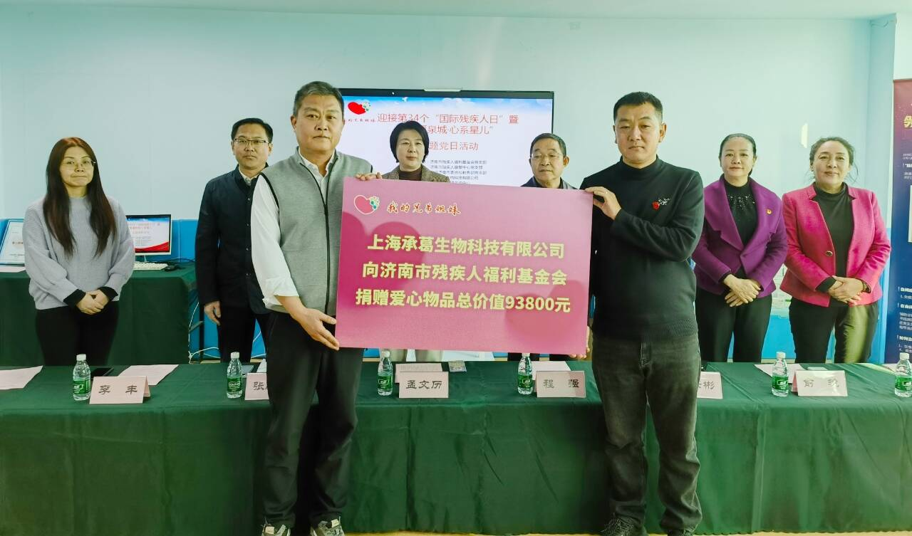 为庆祝第34个国际残疾人日,12月3日下午,济南市残疾人福利基金会党支部、济南市残疾人康复中心党支部、中共济南市委党校教务部党支部携手爱心单位上海承葛生物科技有限公司、济南圣悦心理咨询中心,共同走进济南市明天儿童康复中心,联合开展了“集福泉城·心系星儿”爱心捐赠主题党日活动。活动以党建为引领,凝聚社会各界爱心合力,不仅为“星星的孩子”送去冬日祝福,更向特殊儿童群体家庭传递了来自社会的关怀。