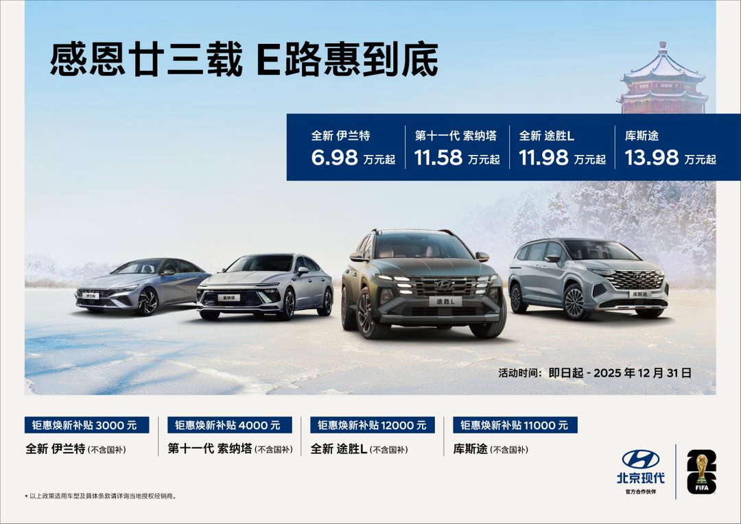 北京现代廿三载感恩钜惠:四款旗舰直抵底价12月购车享双重省心