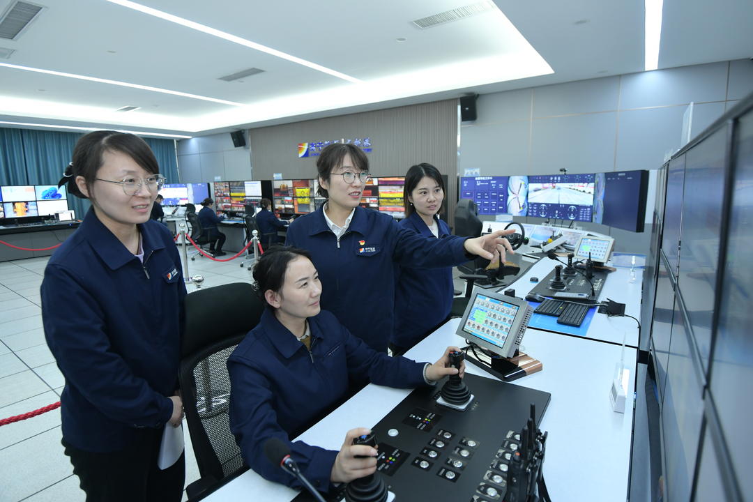 "第一次见四五十米高的岸桥,手心全是汗,真怀疑自己能不能驾驭?"回忆起初学时的场景,宋文庆依旧难掩激动。作为第一批赴青岛港、日照港取经的学员,她深知这份学习任务的重量。怀着强烈的责任感,她咬牙克服恐高症,全身心投入封闭集训。