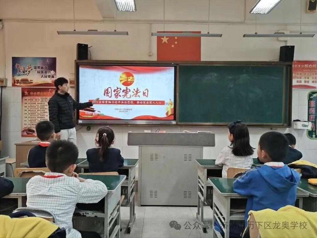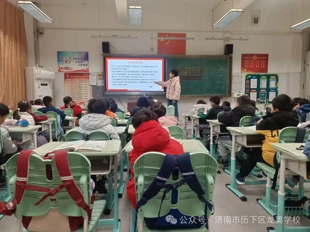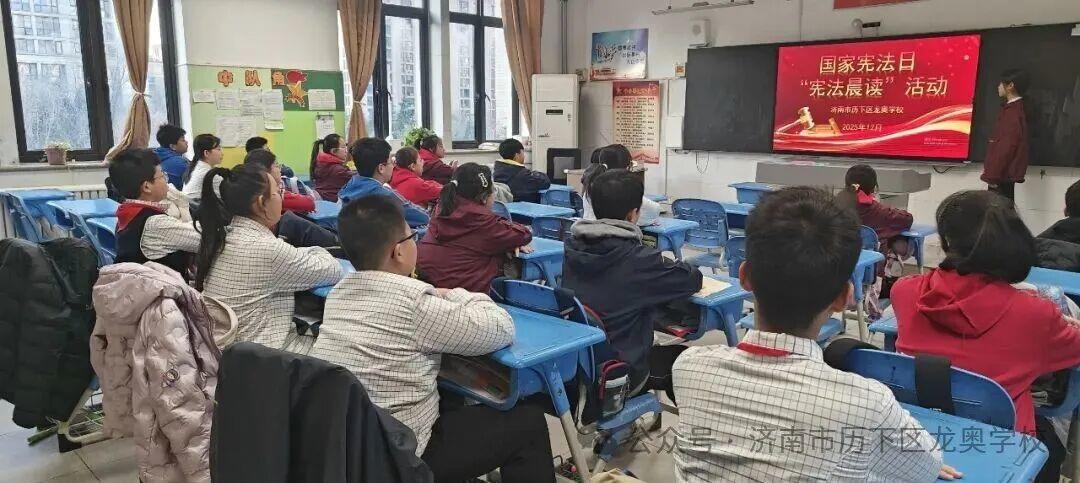 在国家宪法日、全国宪法宣传周、山东省法治宣传教育月期间,济南市历下区龙奥学校以“法润校园,护航成长”主题,与法治安全文化节活动深度融合,组织开展了形式多样的宪法学习宣传活动,营造尊法学法守法用法的浓厚校园氛围。
