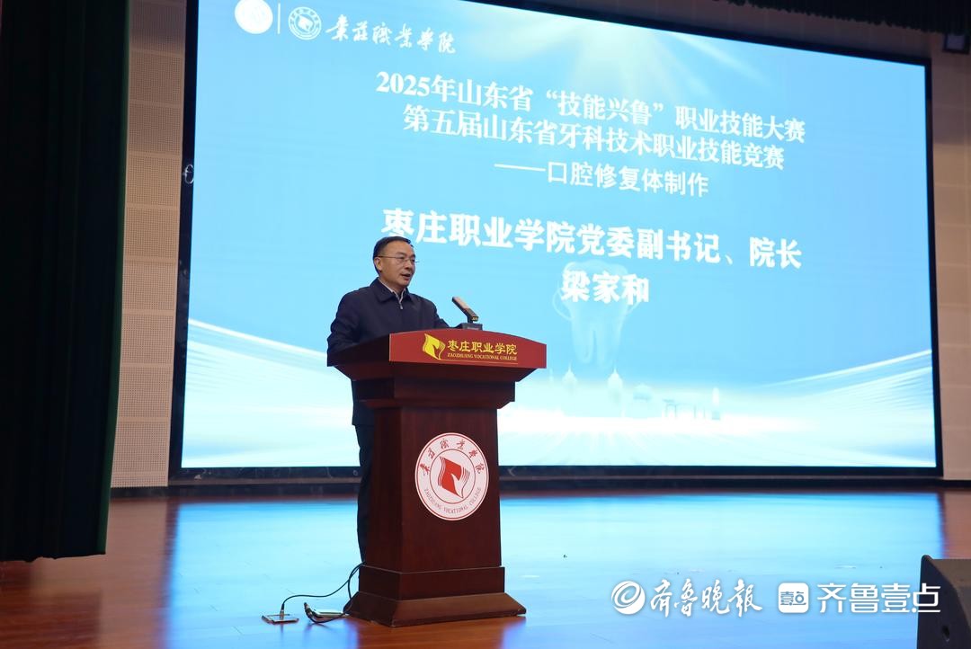 12月6日,2025年山东省“技能兴鲁”职业技能大赛第五届山东省牙科技术职业技能竞赛——口腔修复体制作赛项于枣庄职业学院顺利闭幕。学院党委副书记、院长梁家和,党委委员、副院长刘希震,山东省民营牙科协会副会长刘忠广等出席了闭幕式。