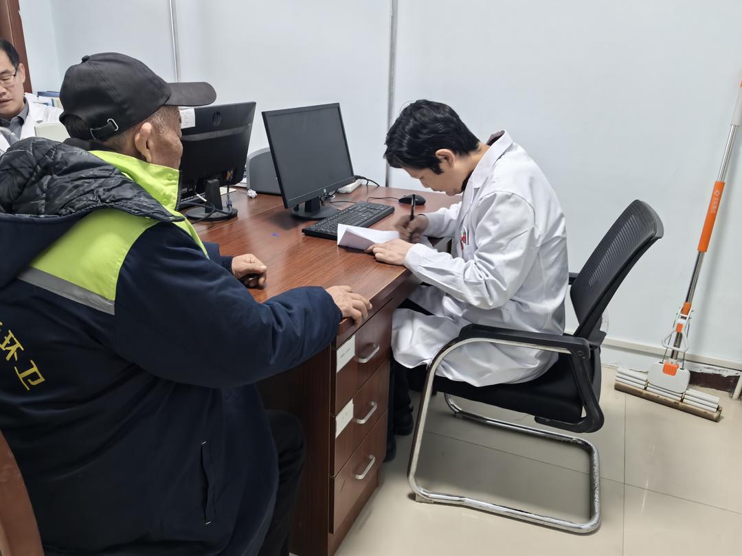 体检现场秩序井然、暖意融融。卫生院医护人员为前来体检的环卫工人提供了血常规、肝功能、肾功能、血糖、血脂、心电图、腹部B超、胸部DR等多项免费检查项目。针对环卫工人长期户外作业、饮食作息不规律等职业特点,医护人员还为他们建立了个人健康档案,详细讲解常见病、多发病的预防知识和注意事项,并耐心解答他们提出的各类健康问题。
