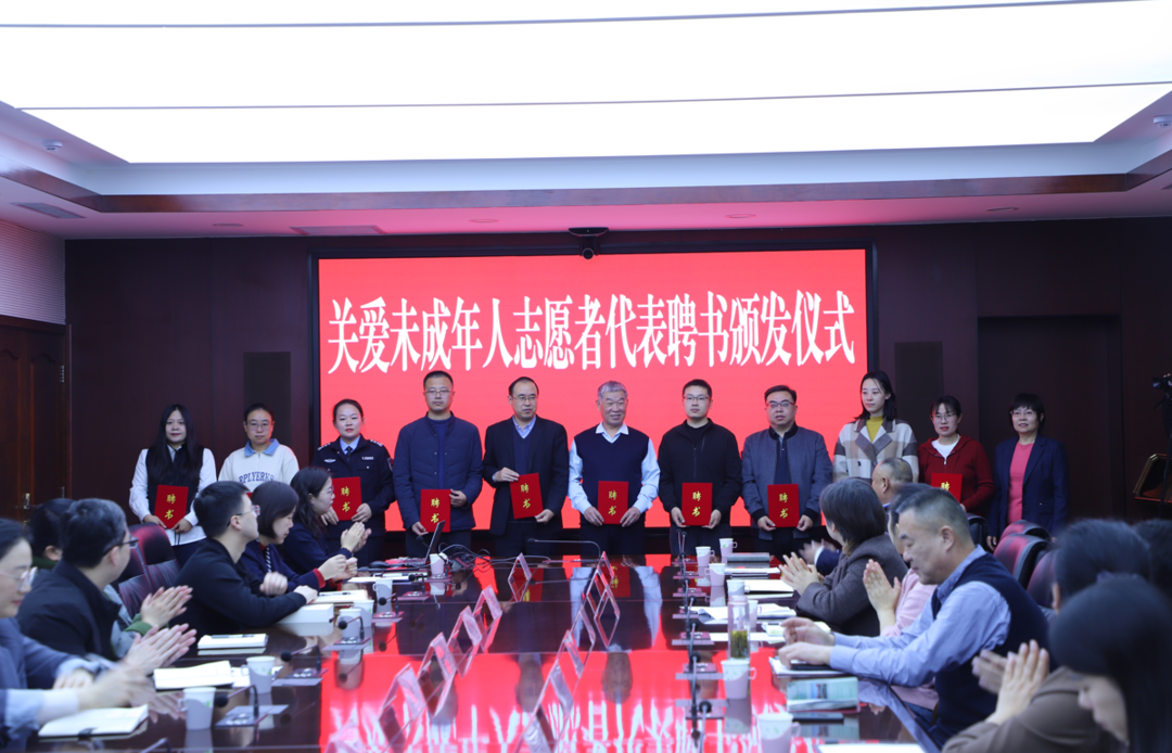 会上,志愿者代表分别发言,为关爱未成年人志愿者代表颁发聘书。