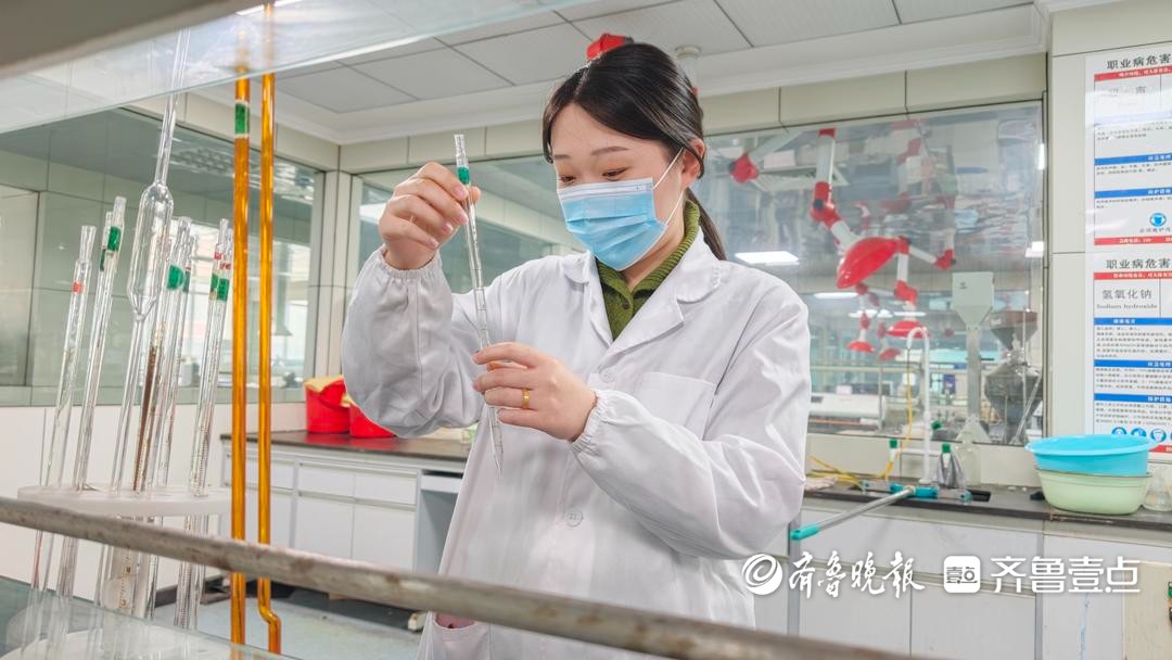 潍坊工商职业学院毕业生刘琳琳在诸城市检验检测中心做食品检测。