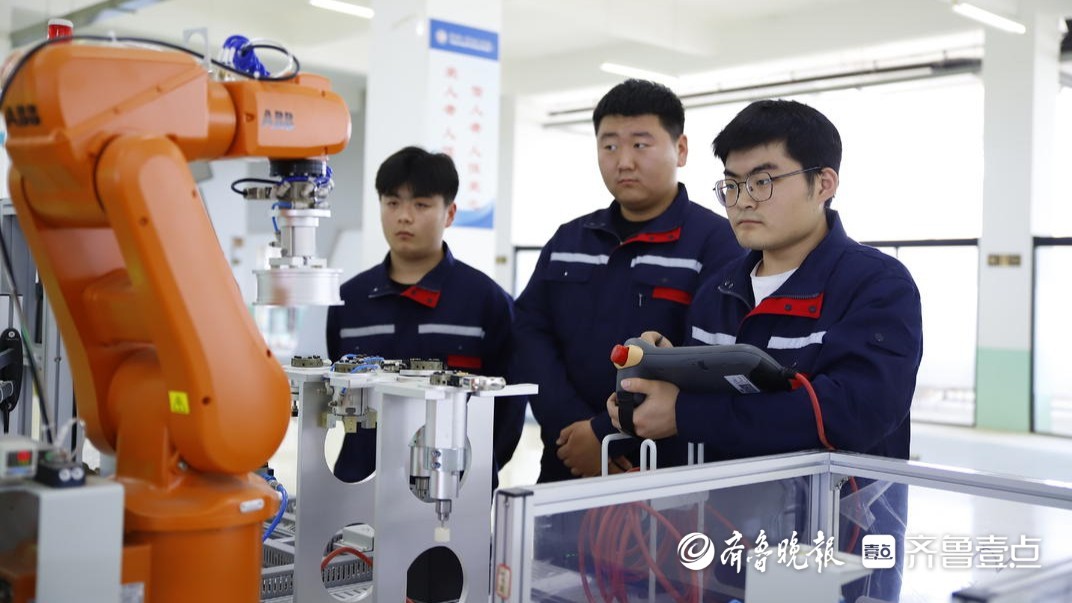 走在潍坊工商职业学院实训楼,一台台数控机床和机器人煞是吸引眼球。