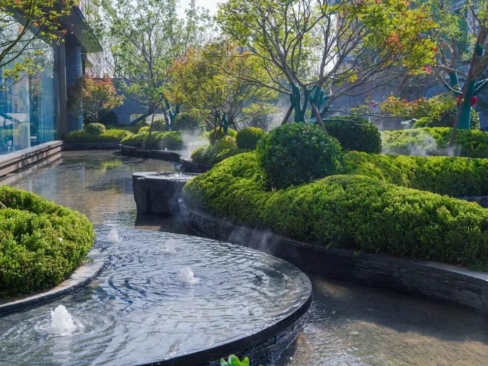曲线水景搭配置石层层叠加
