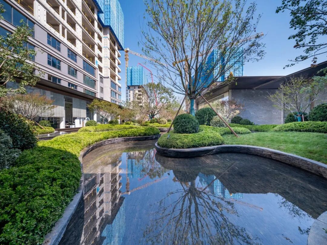 镜面水景前庭、环绕式岛屿水院等景观实景可鉴