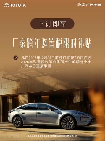 新能源车购置税政策明年起就要从“30万车价内免征”调整成“30万车价内减半征收”,广汽丰田提早应对:凡在2025年12月31日前预订铂智7的用户,因购置税政策变化而产生的额外支出,厂家直接包圆!恰逢近日铂智7首批巡展车提前品鉴活动已开启,门店客流量不断,颇受关注。