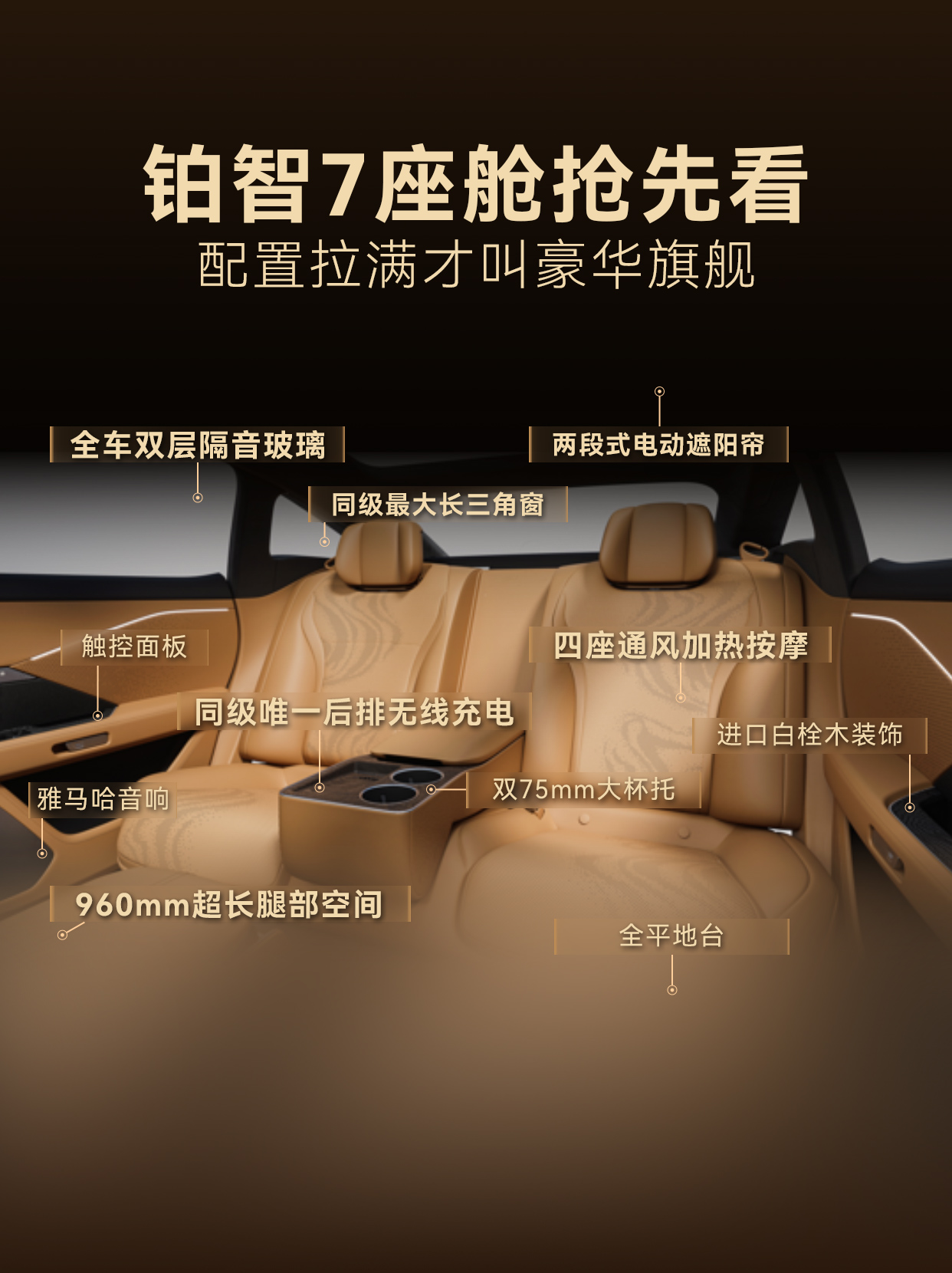 相比豪华品牌竞品主要卖品牌溢价,铂智7把卖车标的钱放到车里——双腔空气弹簧、华为鸿蒙座舱5.0、激光雷达智驾“豪华新三件”全数给到。