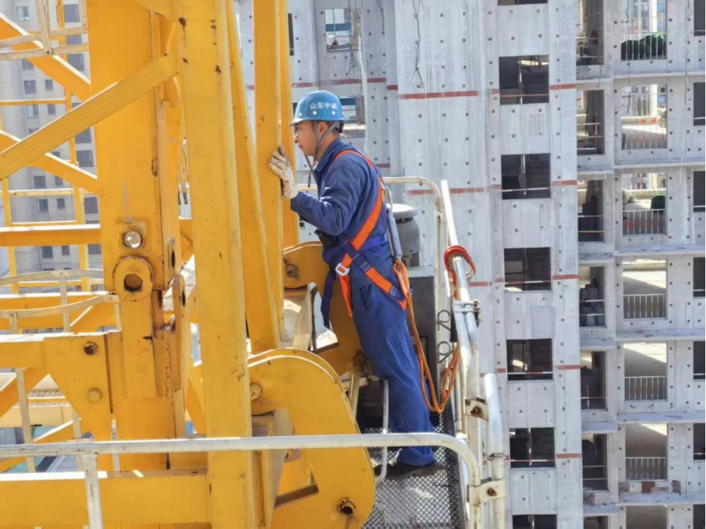 另一款明星产品智能安全带则聚焦高空作业安全核心需求,以“科技兴安”理念赢得广泛关注。“我们通过硬件与软件平台的深度联动,内置双压力传感器实时监测挂钩挂载状态,从技术上杜绝‘双钩空挂’违规操作。”顾文扬一边演示一边解释,当双钩均为空挂时,设备会自动发出蜂鸣警示,同时通过无线通信将作业人员位置、高度及安全状态实时传输至管理平台,“设备采用关机锁定设计,仅管理人员可通过NFC卡片操作,确保‘人带一致’,为高空作业人员筑牢全流程安全防线”。该产品已在济南张马屯片区多个地块项目中投入使用,其智能化监测方案为塔机安拆等高危环节提供了可复制、可推广的安全管控模式。