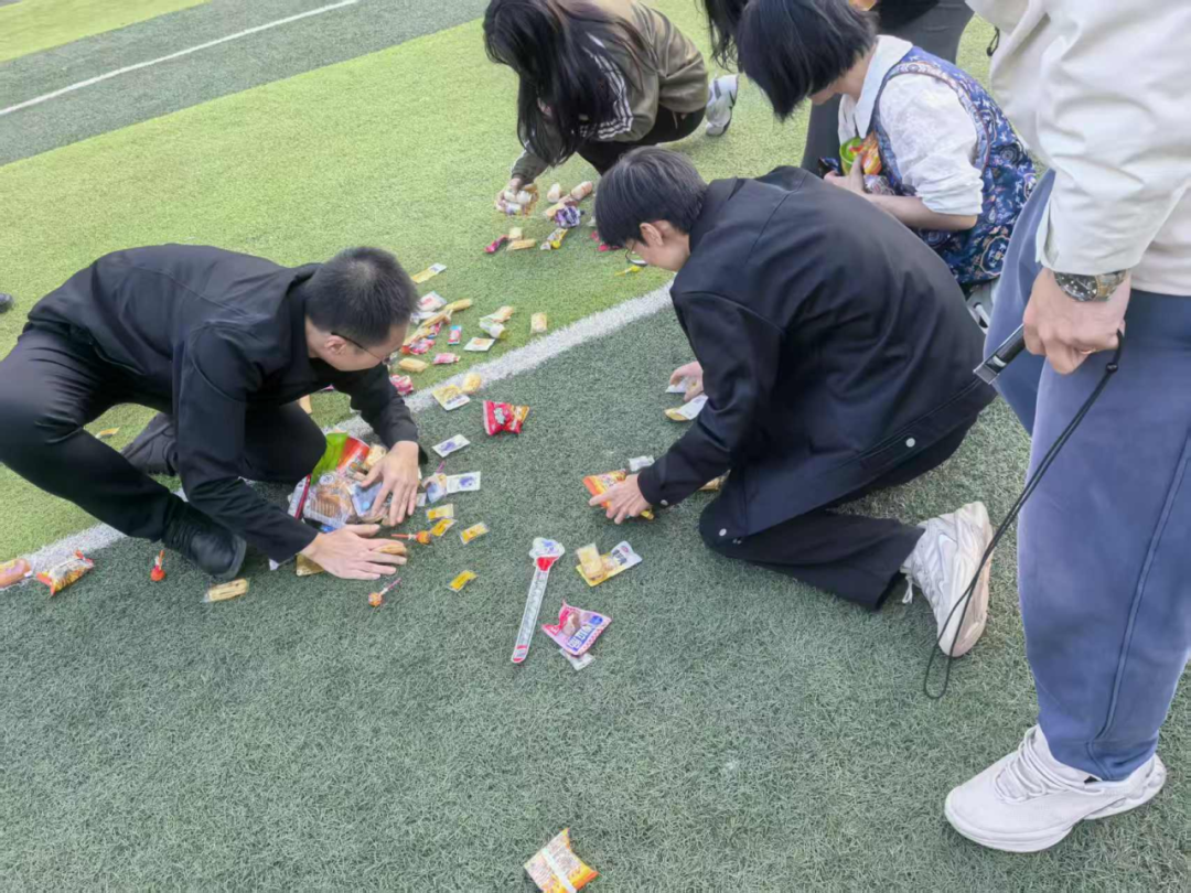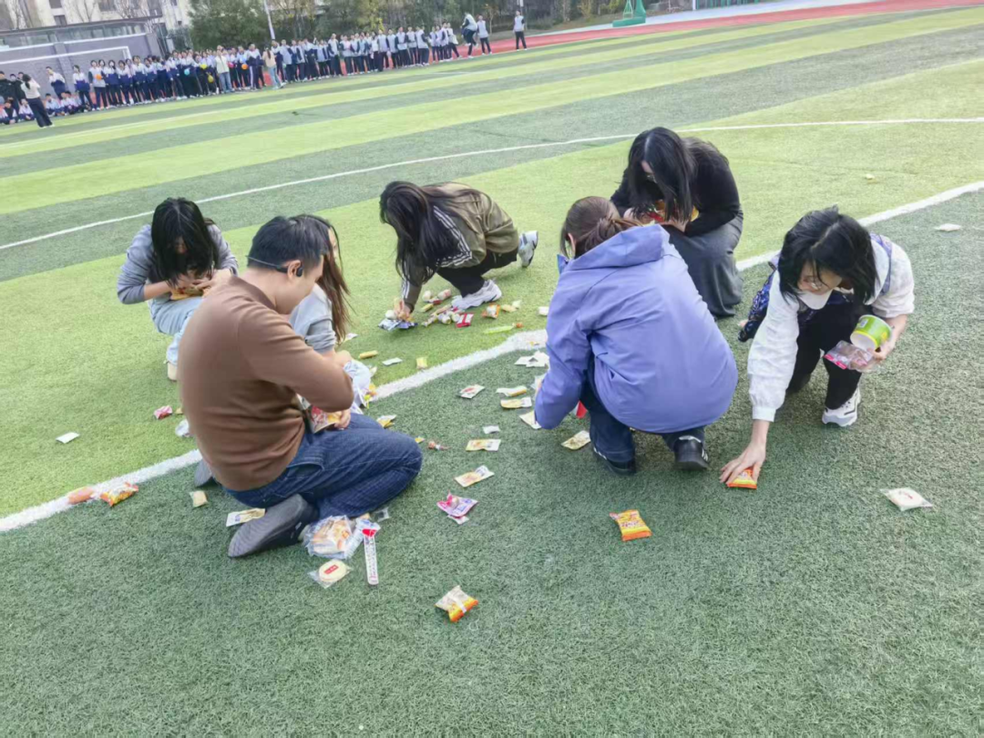活动的最高潮莫过于“抢零食”环节。平日里严肃认真的班主任们为了班级学生全力冲刺,现场加油声、欢笑声此起彼伏,师生间的距离在激烈的互动与分享中被瞬间拉近,班级凝聚力得到了空前的增强。