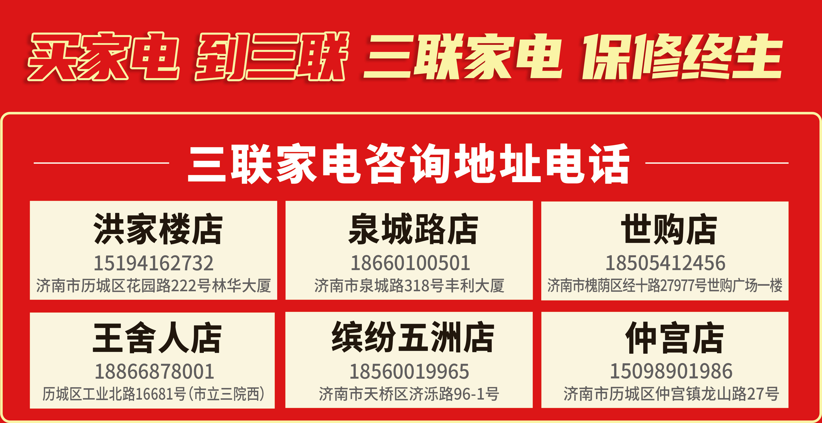 除此之外,为了回馈广大消费者对三联家电长期以来的支持,此次活动三联家电联合各大品牌联合推出多款特价家电产品供大家选购(数量有限,先到先得)。作为山东家电零售行业的标杆企业,三联家电始终坚持“每走一步首先想到的是顾客”的理念,拥有独立且专业的售后维修中心的家电零售企业,三联家电承诺对所售大件家电(电视、冰箱、洗衣机、空调),实行终生免收登门费、开机费及维修服务费的政策,有效帮助消费者规避了诸多潜在的隐性成本支出,彻底消除后顾之忧。