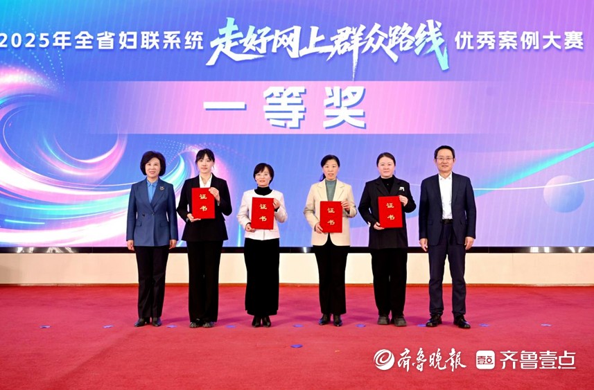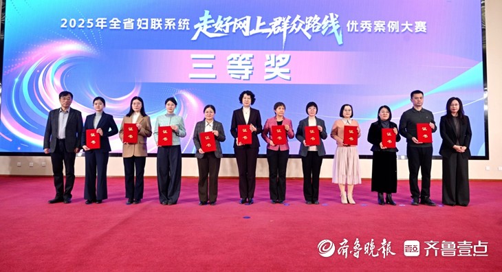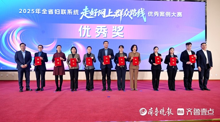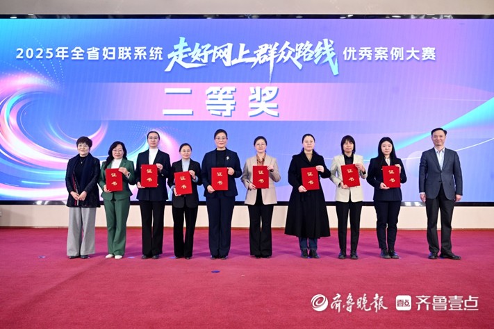 活动现场揭晓了2025年全省妇联系统走好网上群众路线优秀案例大赛获奖名单,获奖单位代表上台领奖。《“线上直播+”激活服务“她”力量》等4个案例获一等奖,《“网”聚新兴巾帼力 “联”通妇儿暖心路》等8个案例获二等奖,《创新“平语·巾帼说”特色品牌 推动巾帼宣讲“声”入人心》等10个案例获三等奖,《“乡音传习”:走好网上群众路线的济南实践》等10个案例获优秀奖。
