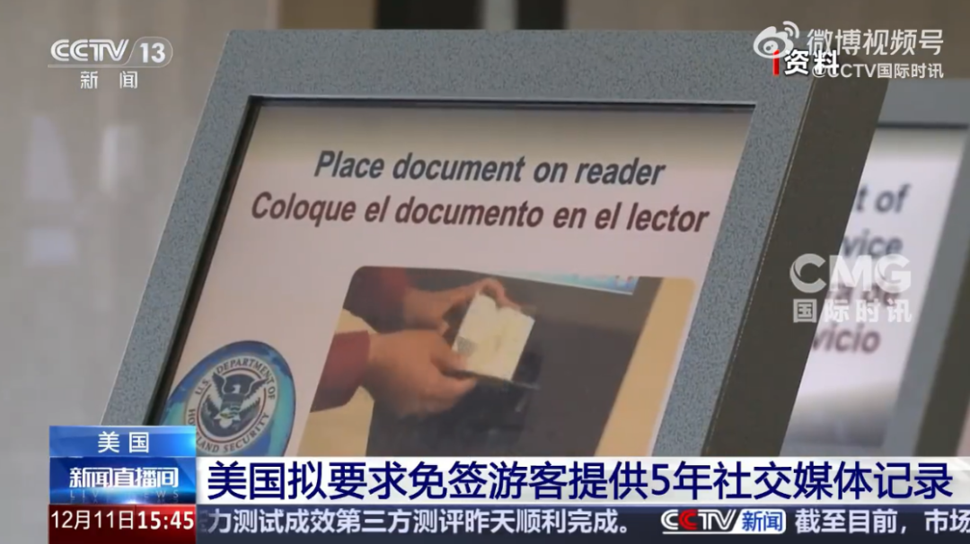 据央视记者当地时间12月10日消息,官方公告显示,特朗普政府计划要求免签外国游客在入境美国前披露过去五年的社交媒体历史记录。